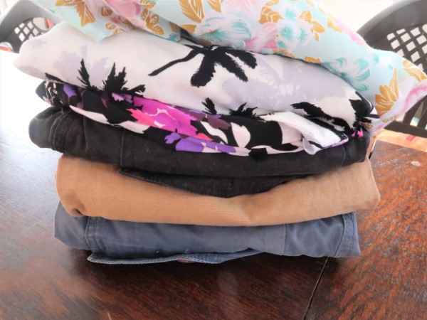 Next are these bigger pieces. Most of it is cotton, I think. There’s also some denim. Will be fun for bags, and maybe even skirts. I love the yellow fabric with the chickens, but I’m not sure what to do with it. A cute vintage apron maybe? Or large shopping bags? Or maybe I’ll defy all fashion rules and make a cute dress. So many options…