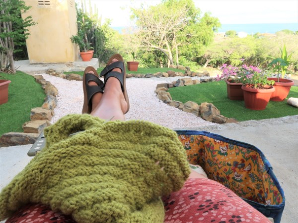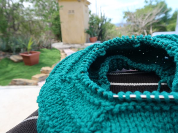 I’m experimenting with knitting a bag without a pattern, but I’m not sure where I’m going with this prototype. It is wonderful comfort knitting though and I guess I will find some use for it eventually, so I’ll just keep going.