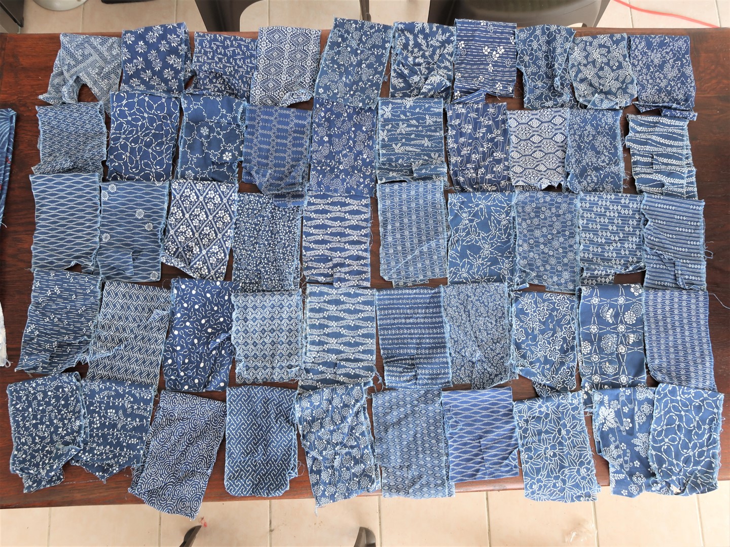 First of all, this. I think it’s a jelly roll. There are 50 strips of this blue fabric and most of them are different (only four or five duplicates). Someone cut a little square out of every one of them, but I think I could easily make a quilt out of these. I’m really amazed that I somehow was able to unearth all 50 strips from that bin.