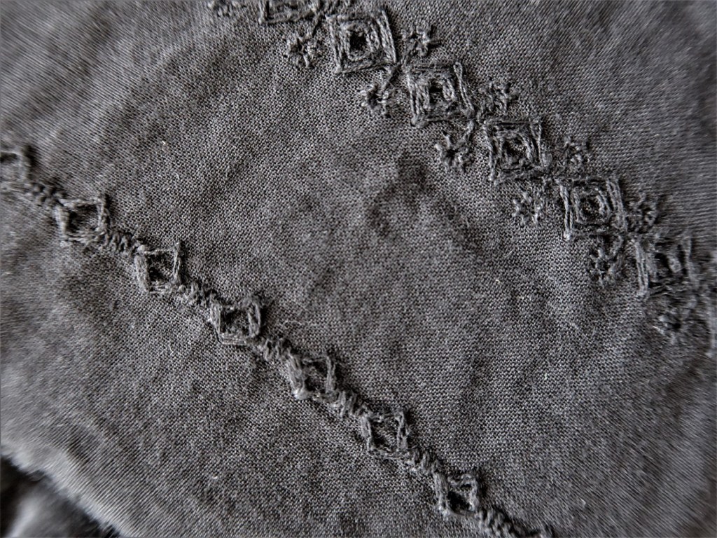 You can hardly see the black fabric in the picture above, but it’s rather nice. It has embroidered stripes and there’s enough to make a sleeveless blouse.