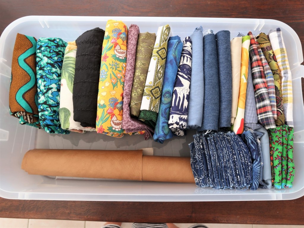 My shopping that one Saturday was really successful. The thrift shop that was supposed to be almost all books also had a clothing department. I found two dresses and a blouse and when I asked if they had fabric, sheets or tablecloths, the lady behind the counter pointed me to the bins underneath the tables. Oh my. There was a lot of rubbish in those bins, but also some real treasures to be found. At first, I tried to keep myself from going overboard, but then the kind lady said: “You can take it all free. Nobody wants it. Just take it off our hands.” Well, that’s all the motivation I needed. So I kept digging and filled up a box with all kinds of fabric. When I showed the ladies what I was going to take and asked what to pay for the clothing, the first lady said: “I told her she could take that fabric for free.” But there was this Dutch woman who said (with that sour expression lots of Dutch women seem to have these days): “Well, a small donation wouldn’t hurt one bit.” Um, no. Of course not. It was for a good cause and everything But it wouldn’t have hurt her to ask nicely. Oh well, I mostly feel sorry for people like that. Anyway. I paid 12,50 guilders (about 7,50 dollars) for a whole bag of fabric. The same amount of money for the dresses and the blouse, and then 35 guilders for a giant box of books. Consider my donations made. I washed all the fabric when I came home, and then it sat in a laundry basket for two days. Until last Tuesday, when I decided organizing my fabric would make me happy.
