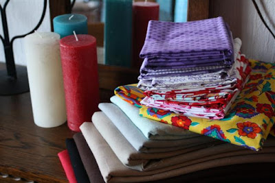 This morning a package arrived and I was so happy to see this stack of fat quarters. Officially I knew it was coming, because I won a give away at Soulemama’s. But that was way back in June, so I sort of gave up on it arriving.