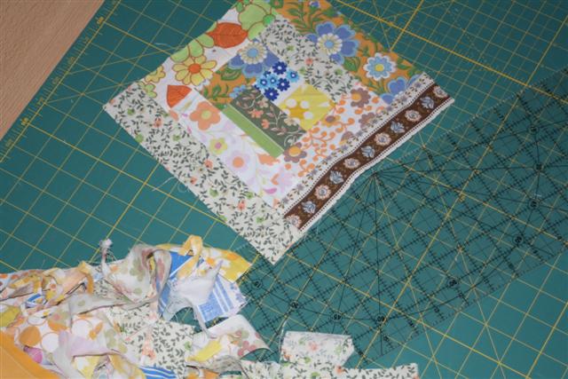 At the last moment I came up with this: I sewed a quilt block on some cardboard and glued that to the page.