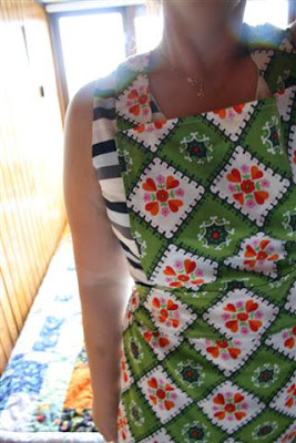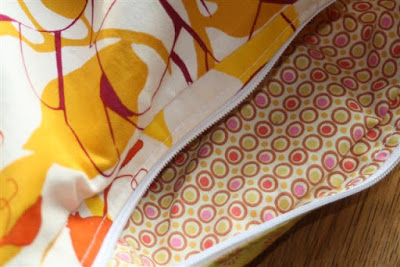De back is some fabric I had that had exacltly the right colors and the border is made from the pink cover (I had some left) I quilted a sun (circles and beams).