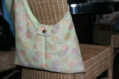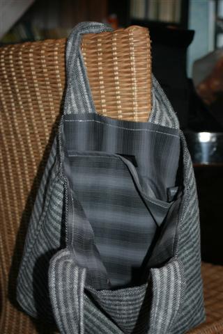 Recycling. Used to be an old polyester (so, not really wearable) blouse, now a cute little bag.