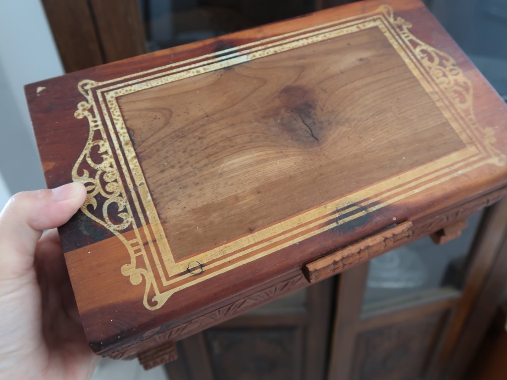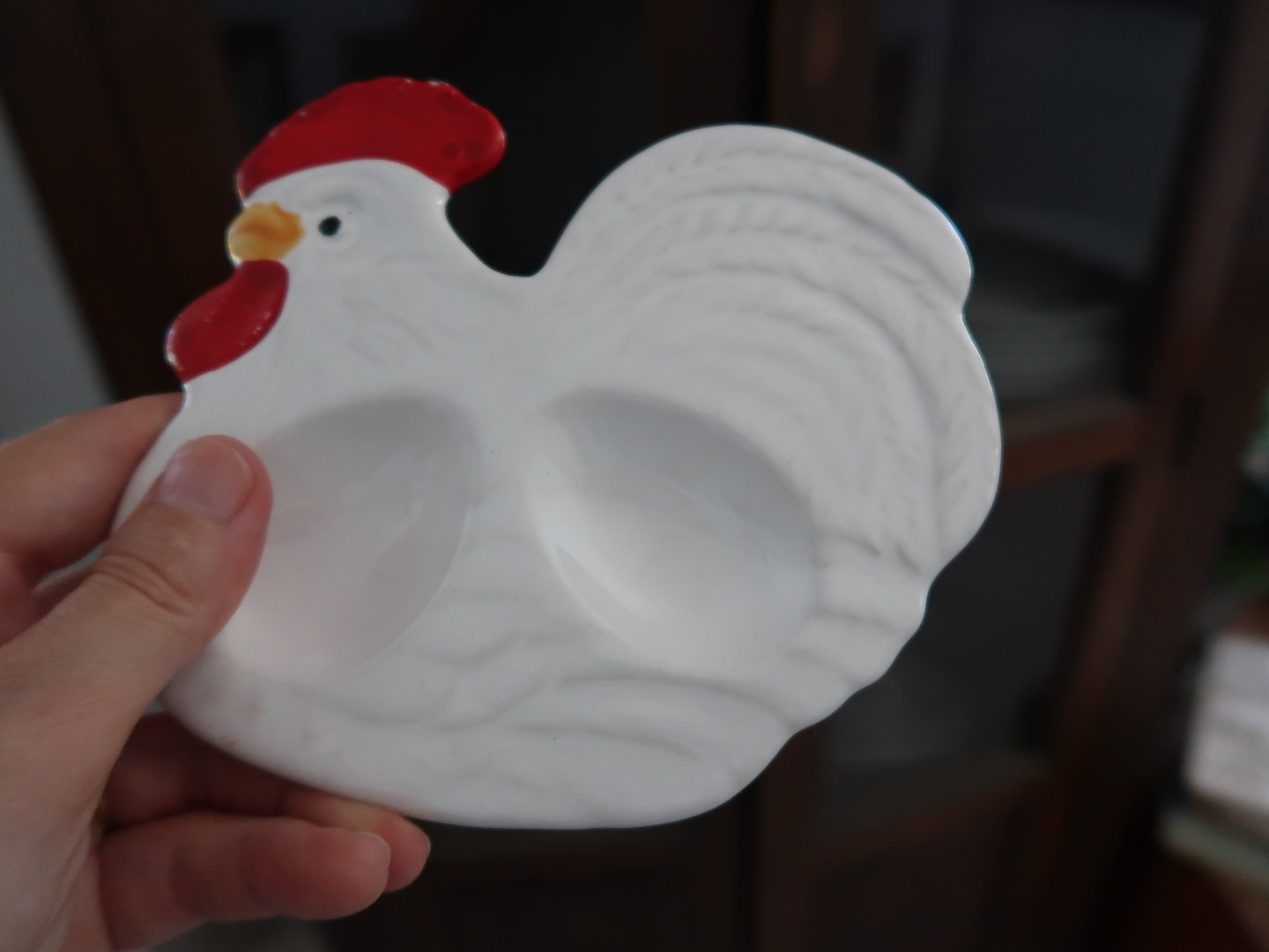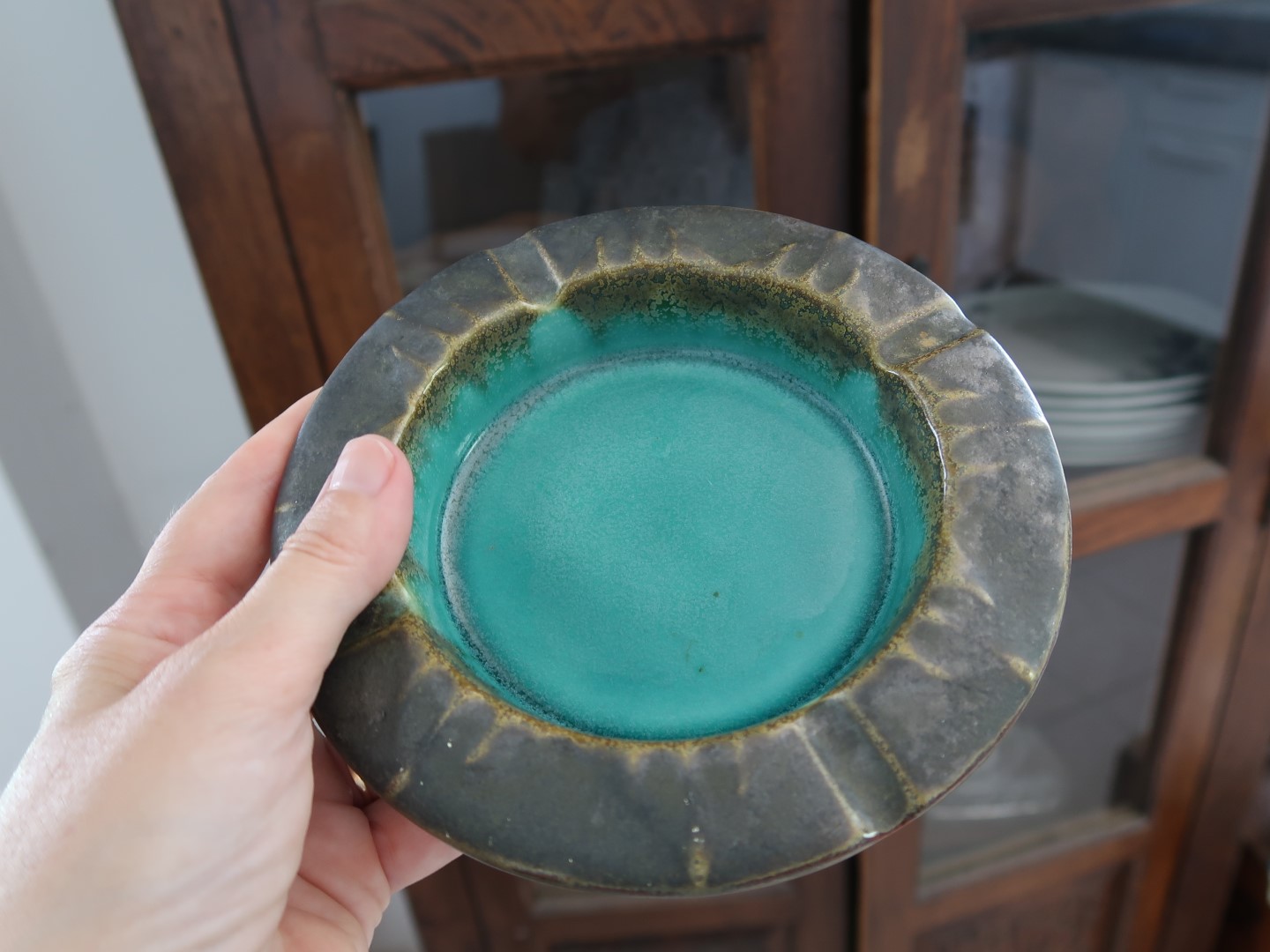 Anyway, here’s the rest of the stuff I found. Those wooden leaves… I don’t know. They look like the broke off something, but I just like them very much. I’m sure I will find somewhere to put them. The orange/red bowl is from Pyrex and it’s dirty (still soaking at this point), but in good condition. I usually don’t pick up colors like that, but… I don’t know… I just wanted it.