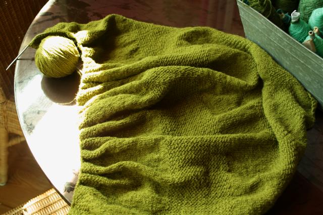 The shawl is growing steadily.