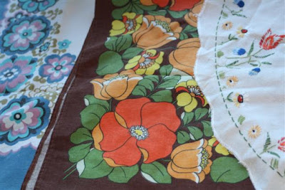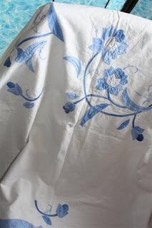 A giant table cloths with (hand?) appliqued flowers