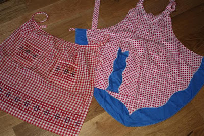 I used to have an apron like the one on the right. I embroidered it myself when I was in elementary school. I have no idea where it is, but this one reminded me of it. The other one has an interesting design, but it also fits quite well, so I think I will try to copy it.